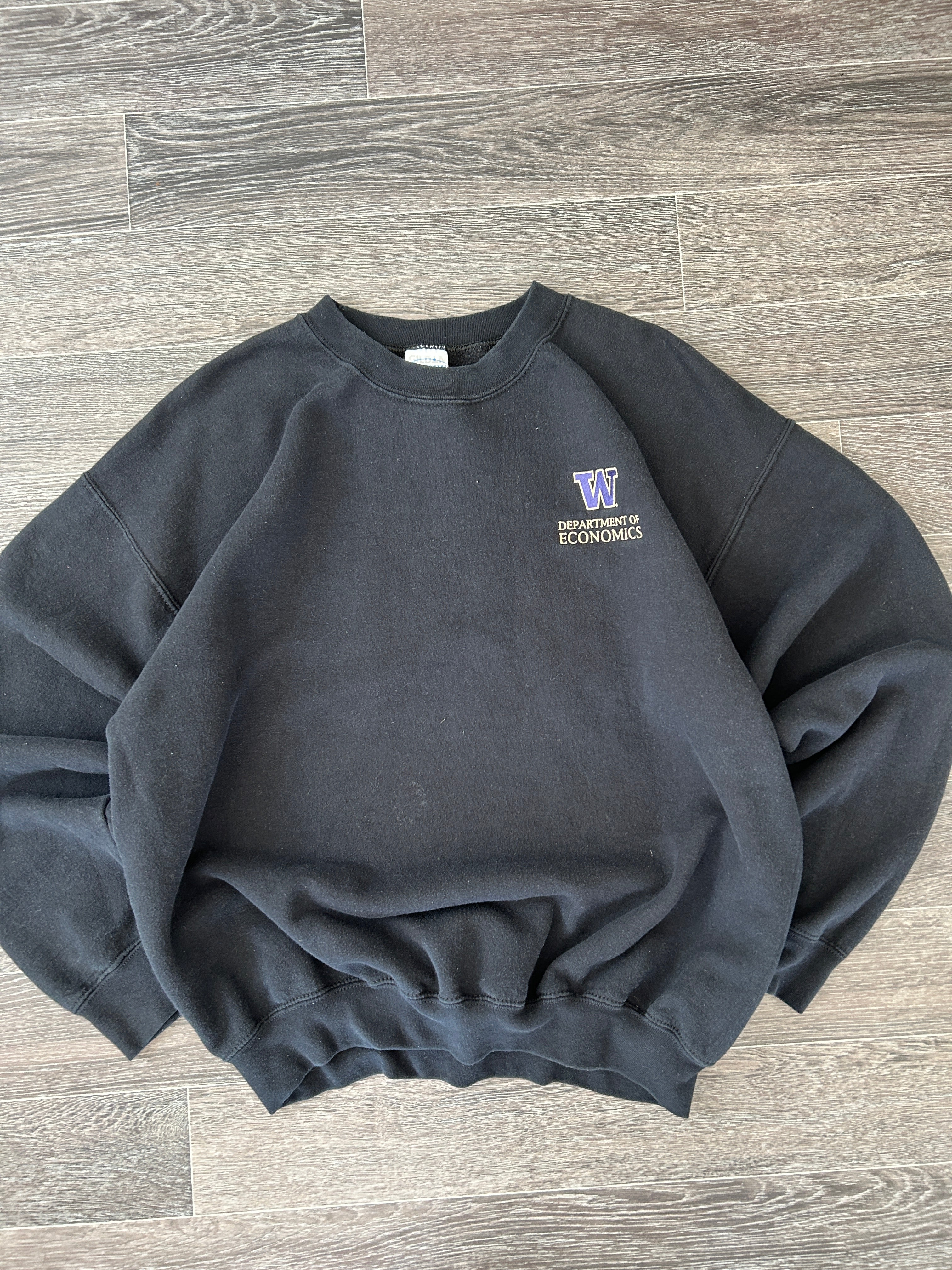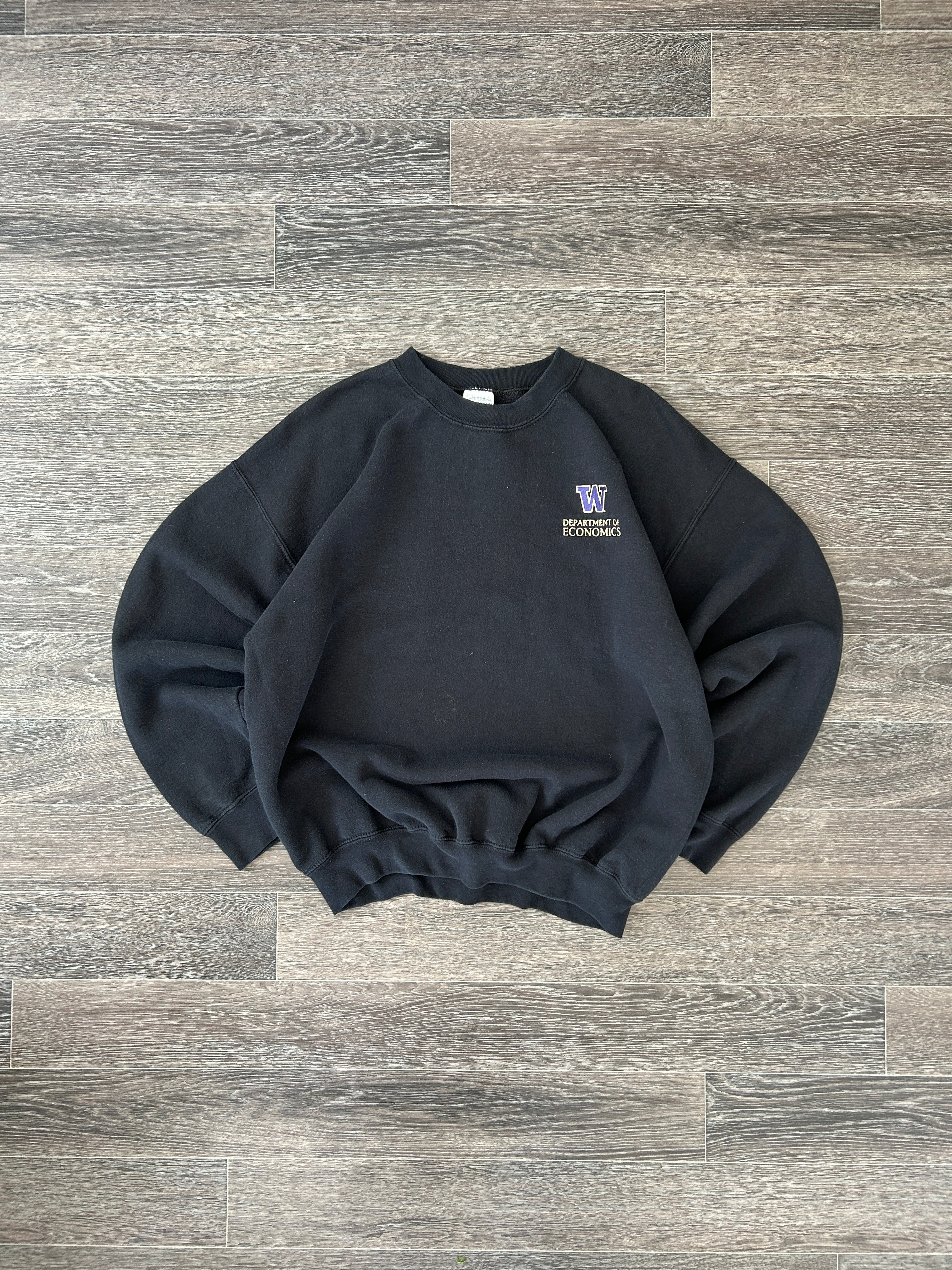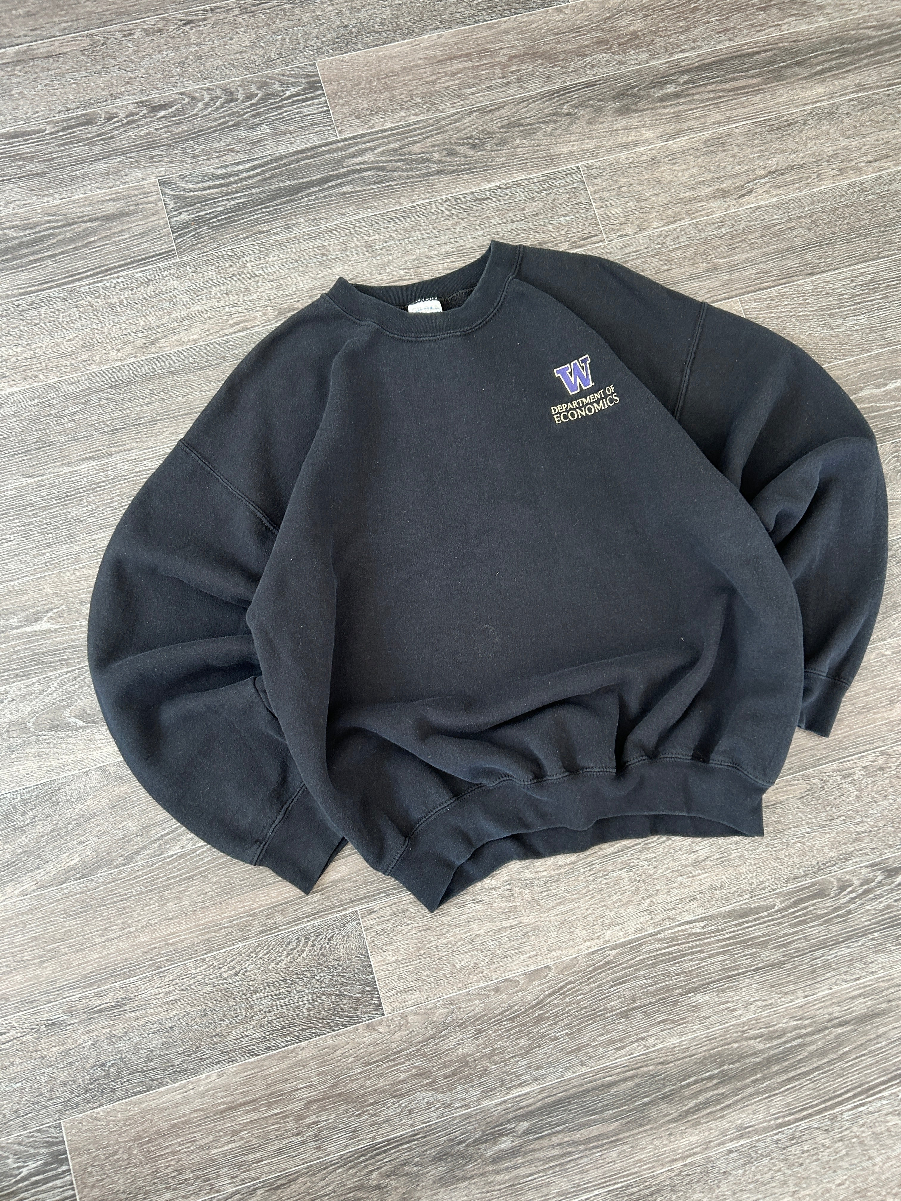Vintage 90s Gildan Heavyweight Department of Economics Black Crewneck