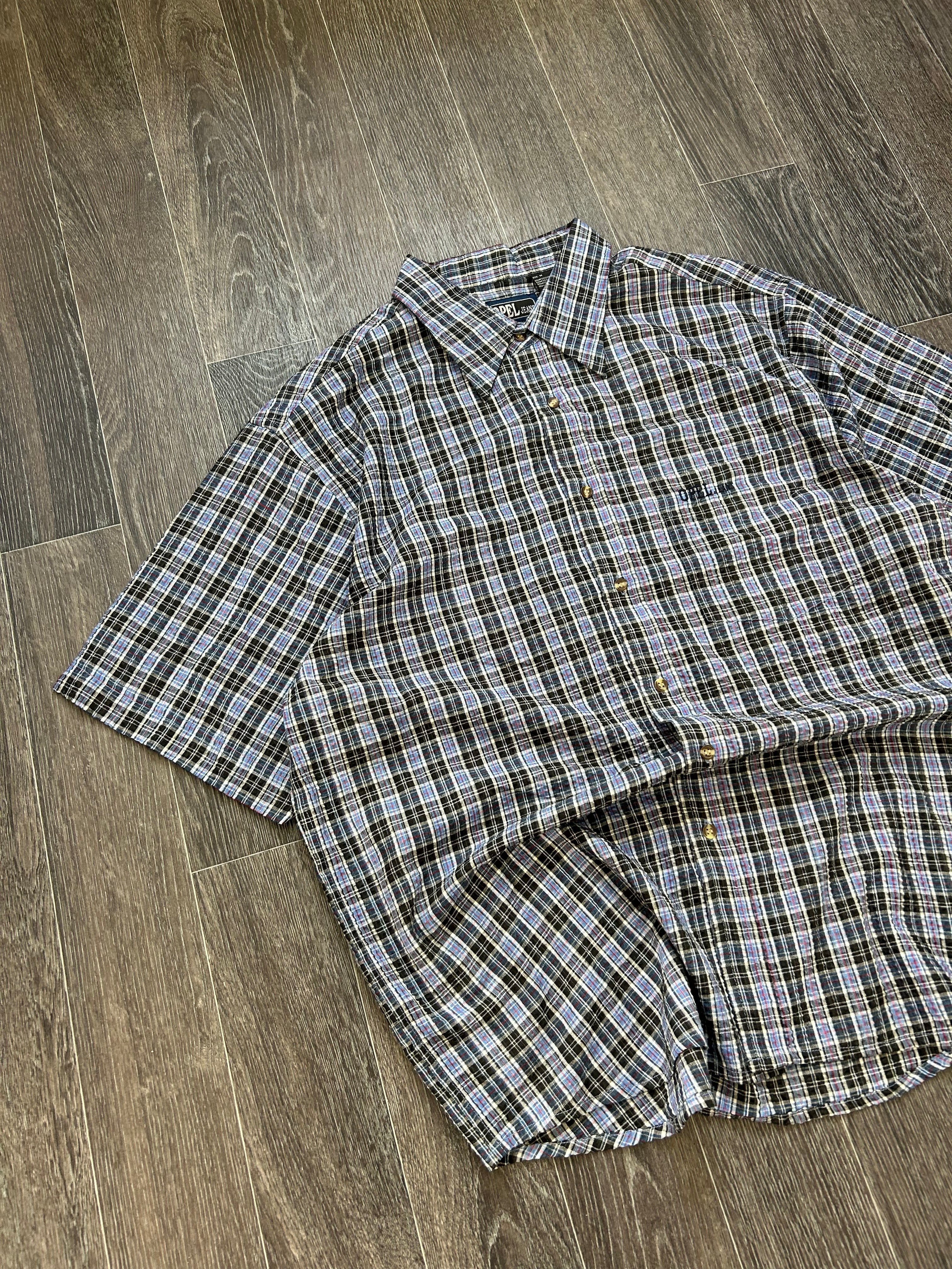 Vintage Y2K Opel Jeans Checkered Cloth Like Button Shirt