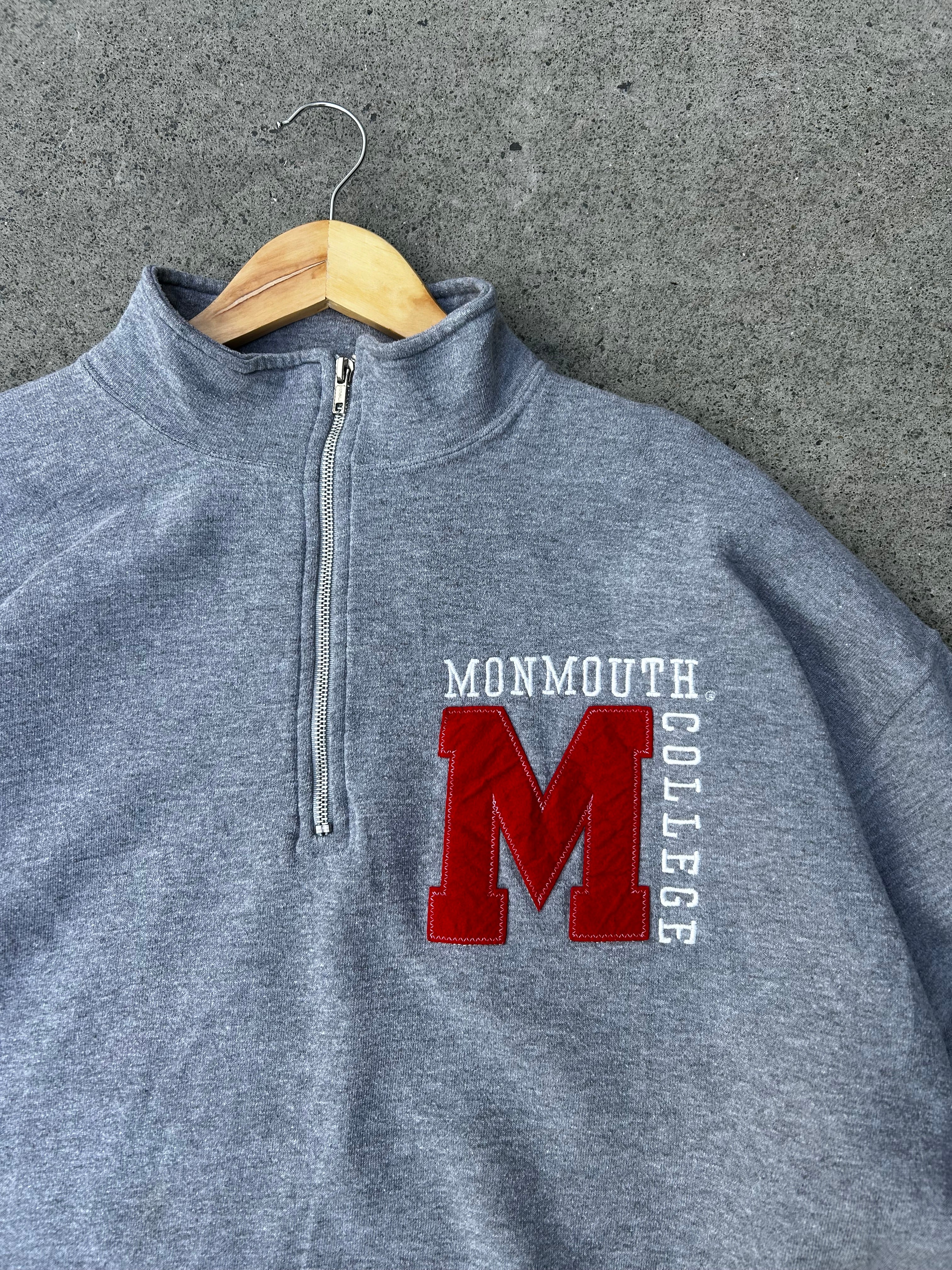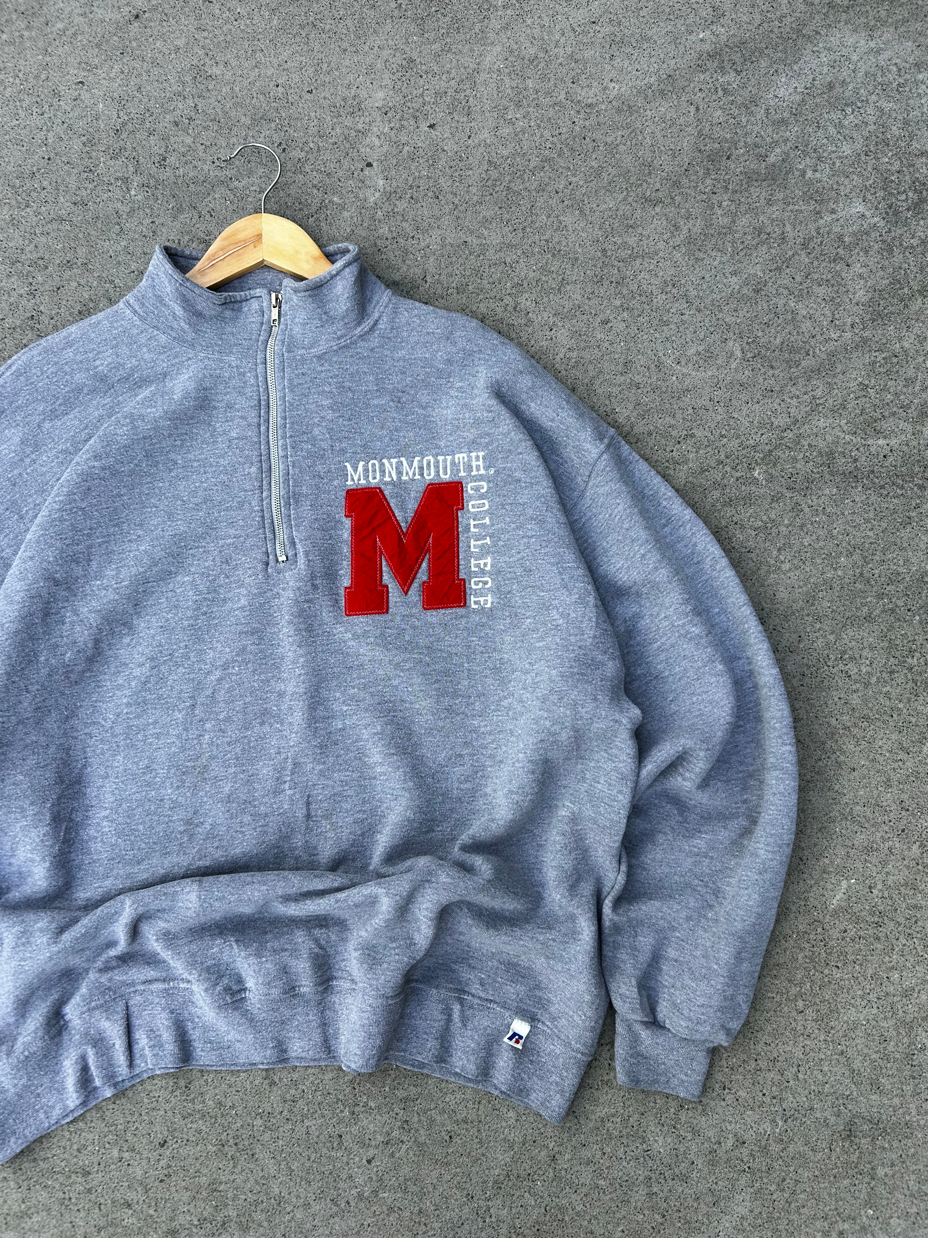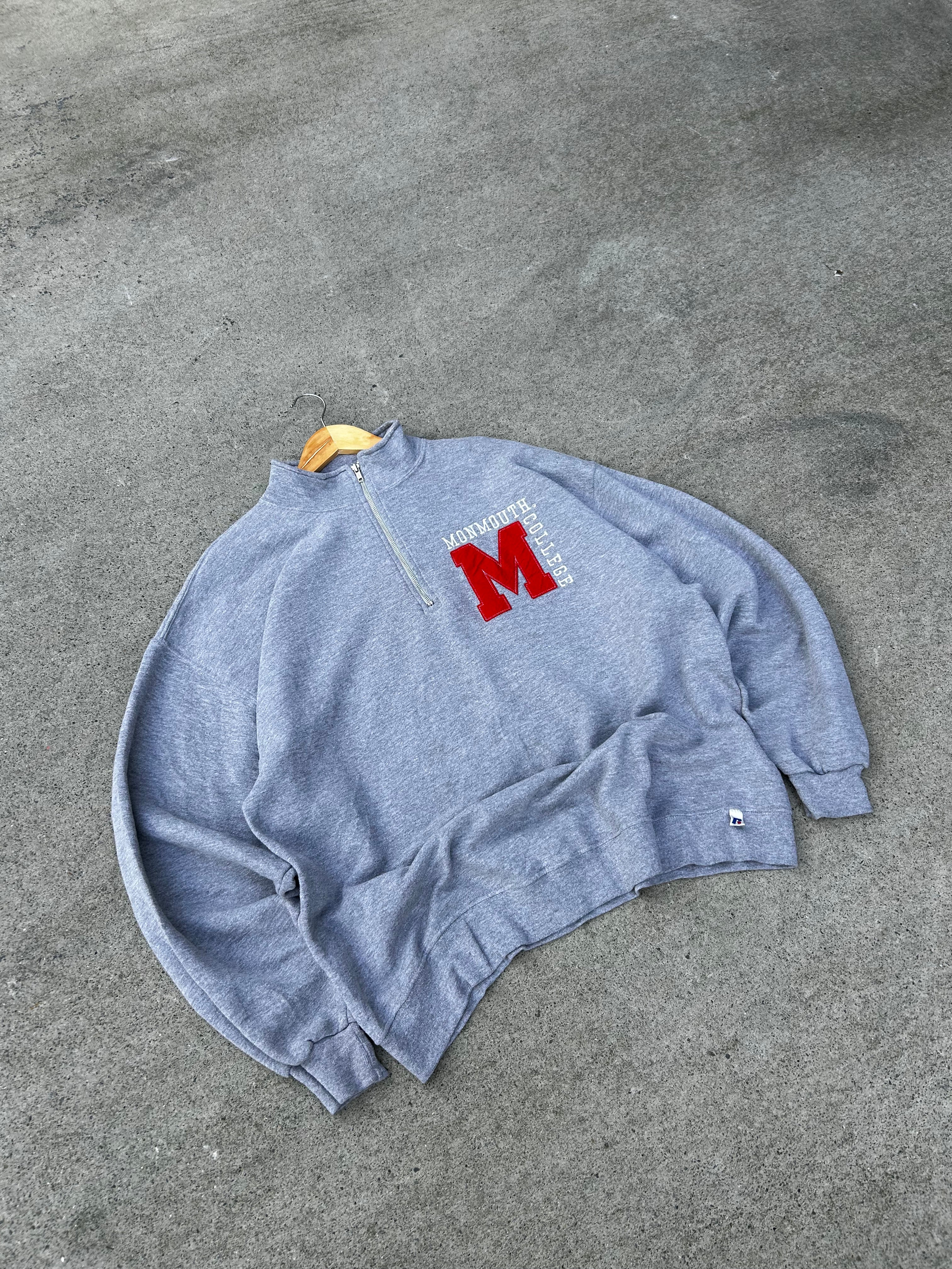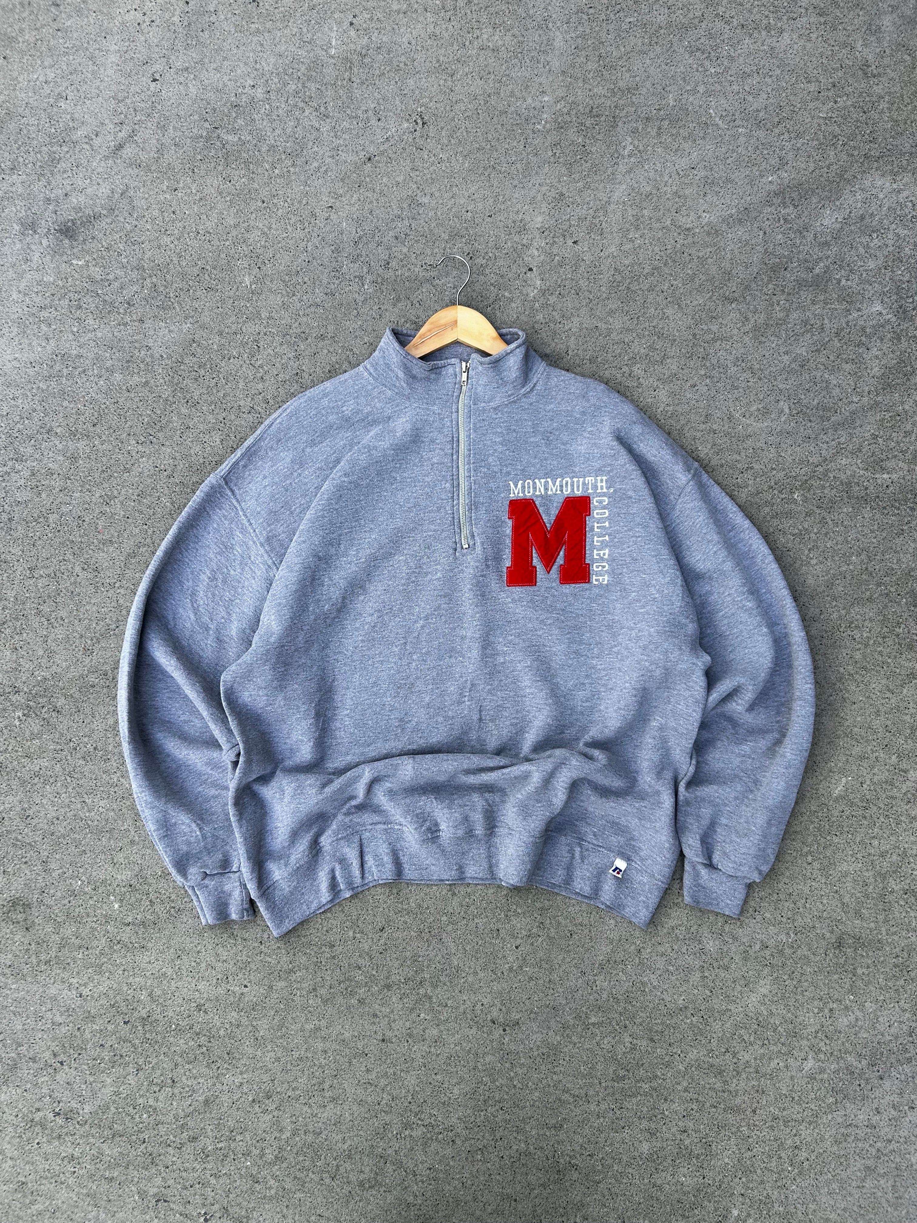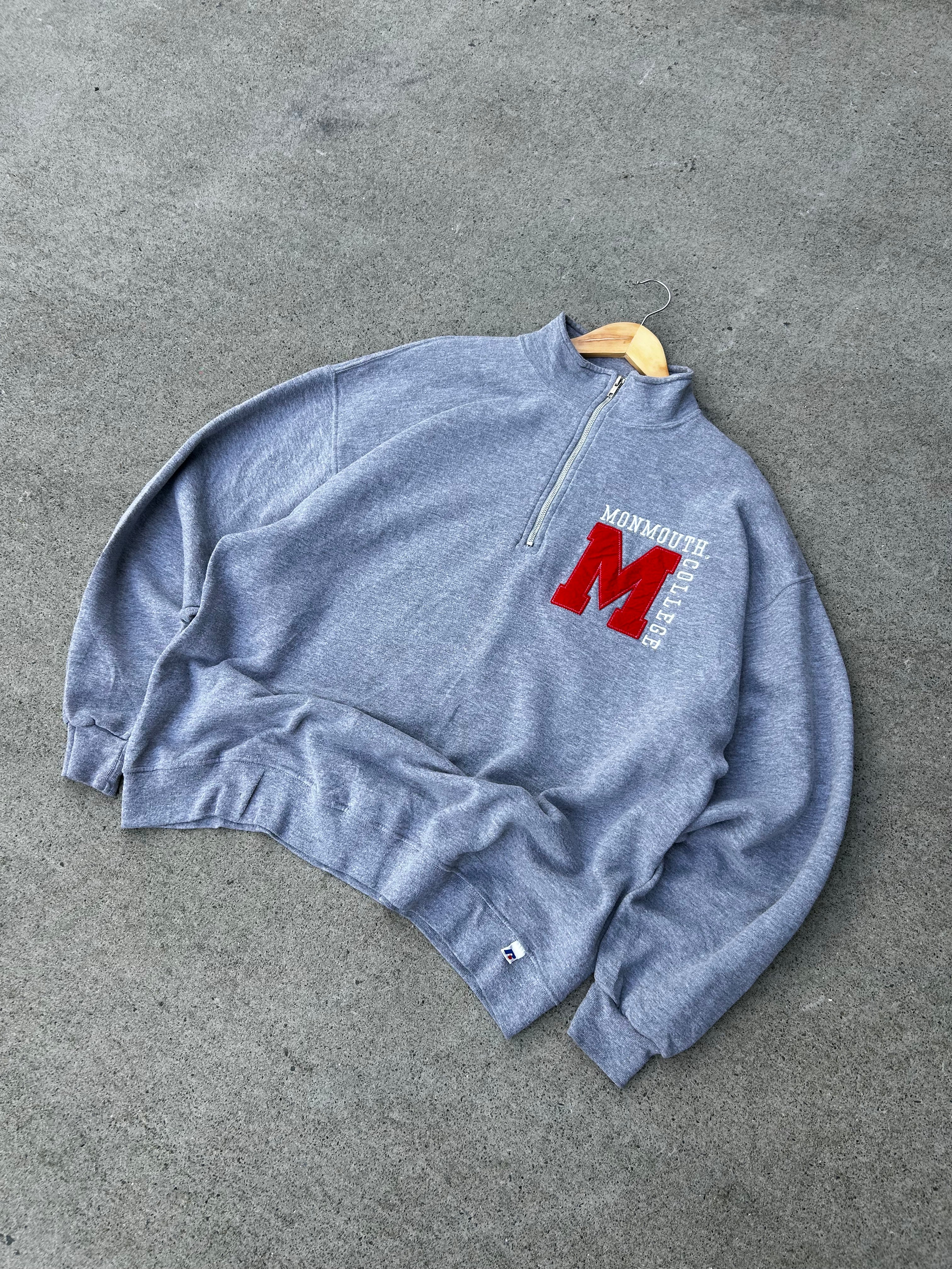 Super sick Vintage 90s/00s Russell Athletic Monmouth College Grey Quarter Zip Sweatshirt