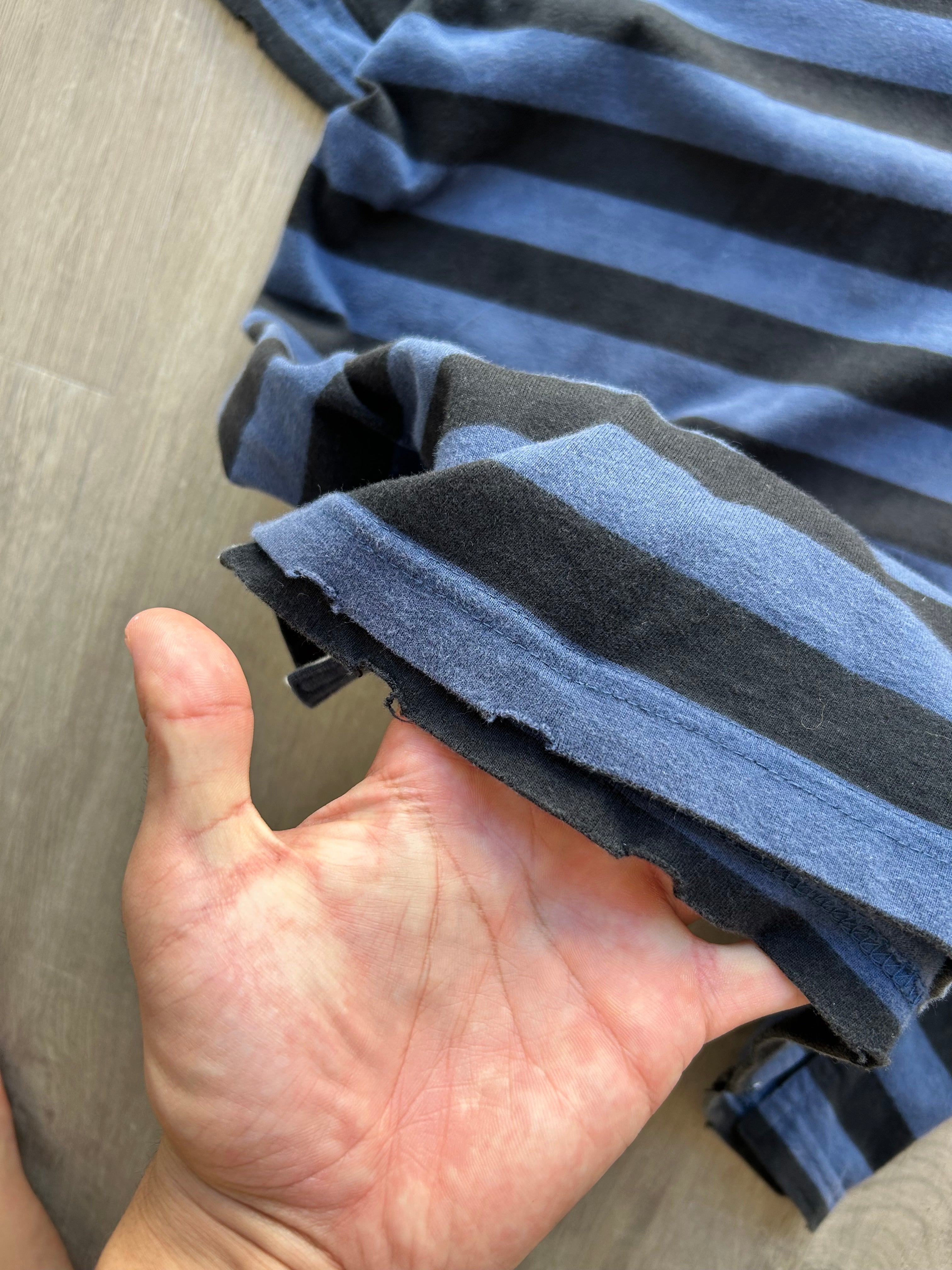 Has cool distressed feature on the outsides of the sleeves and bottom.