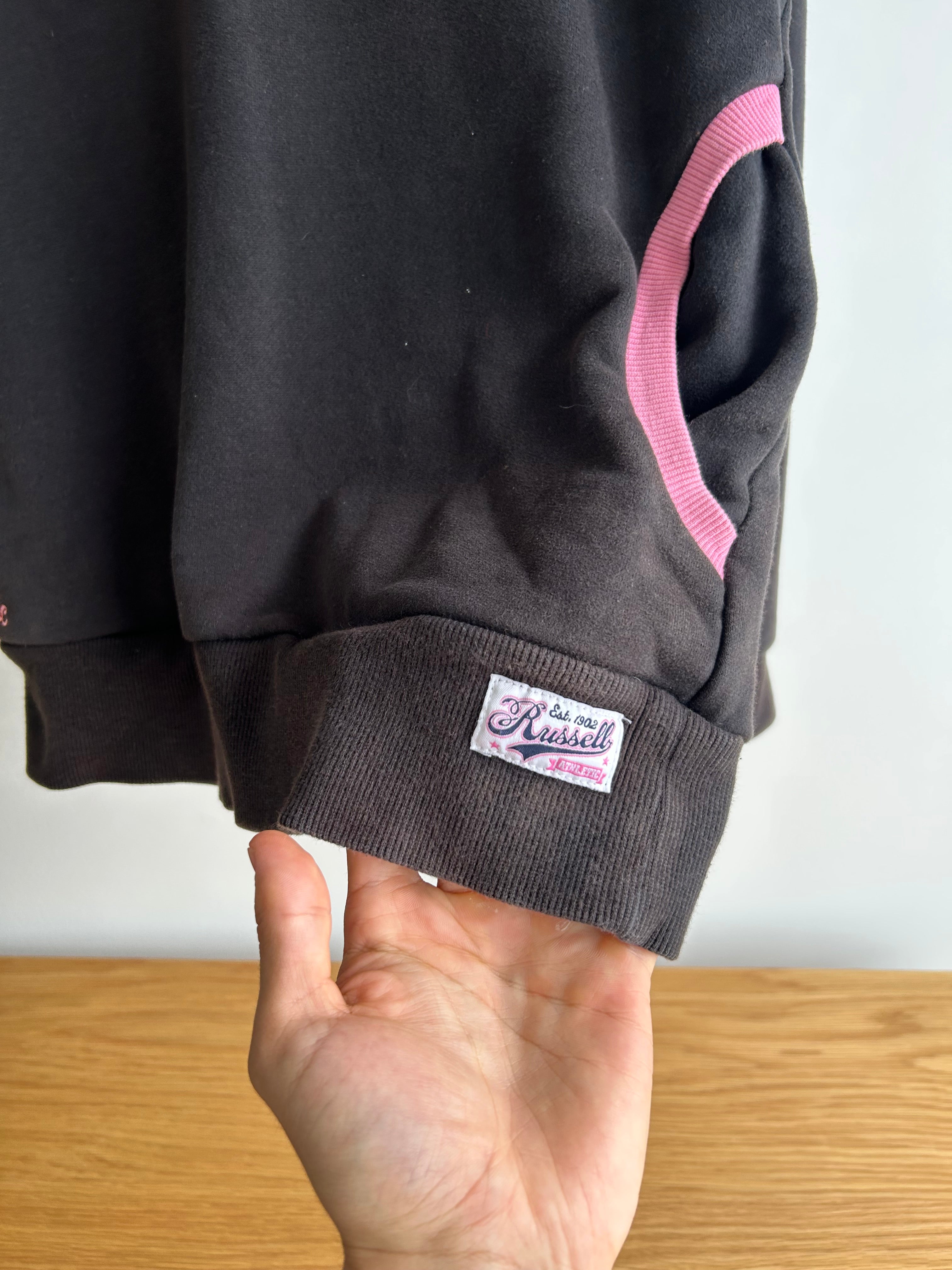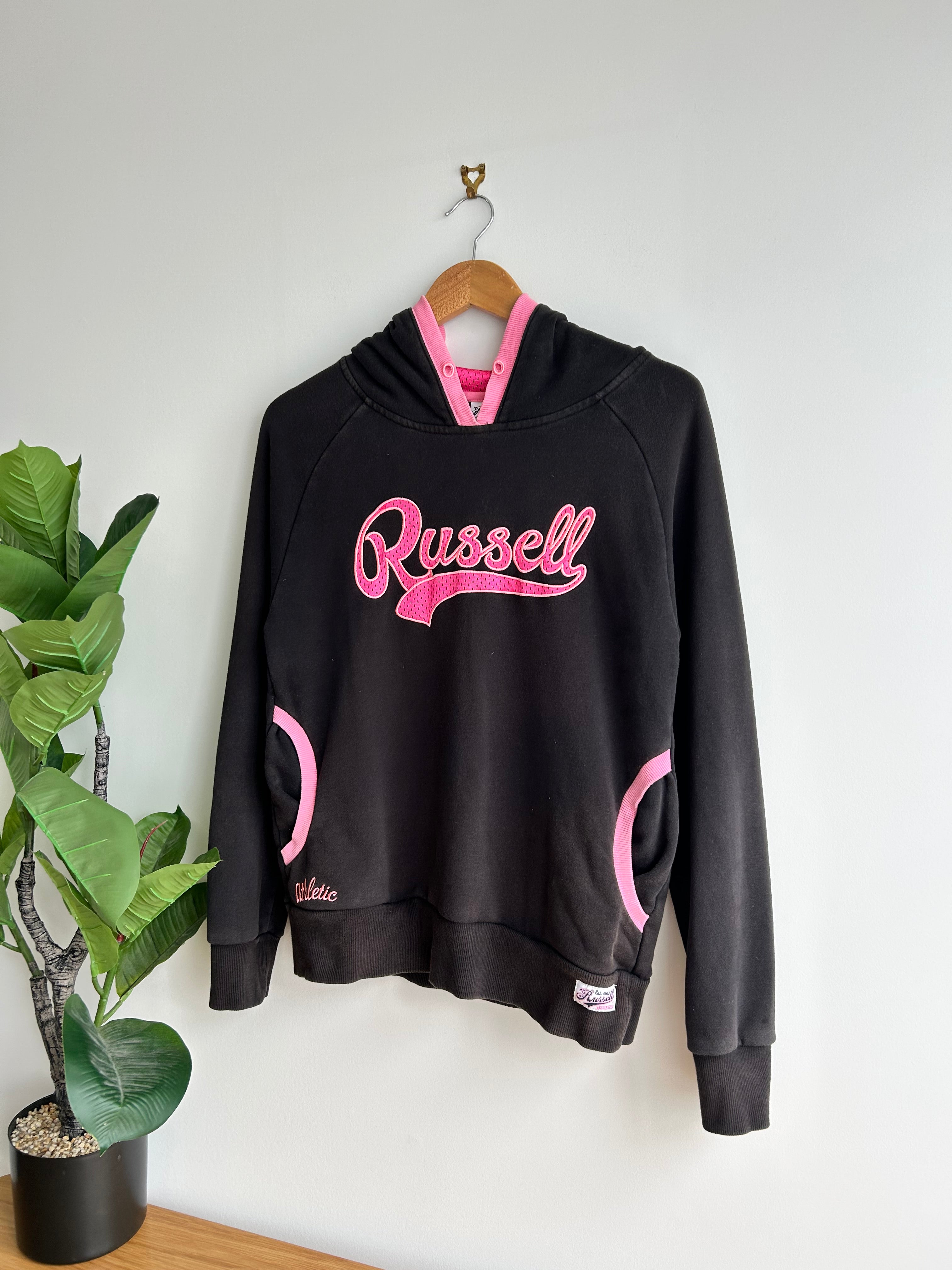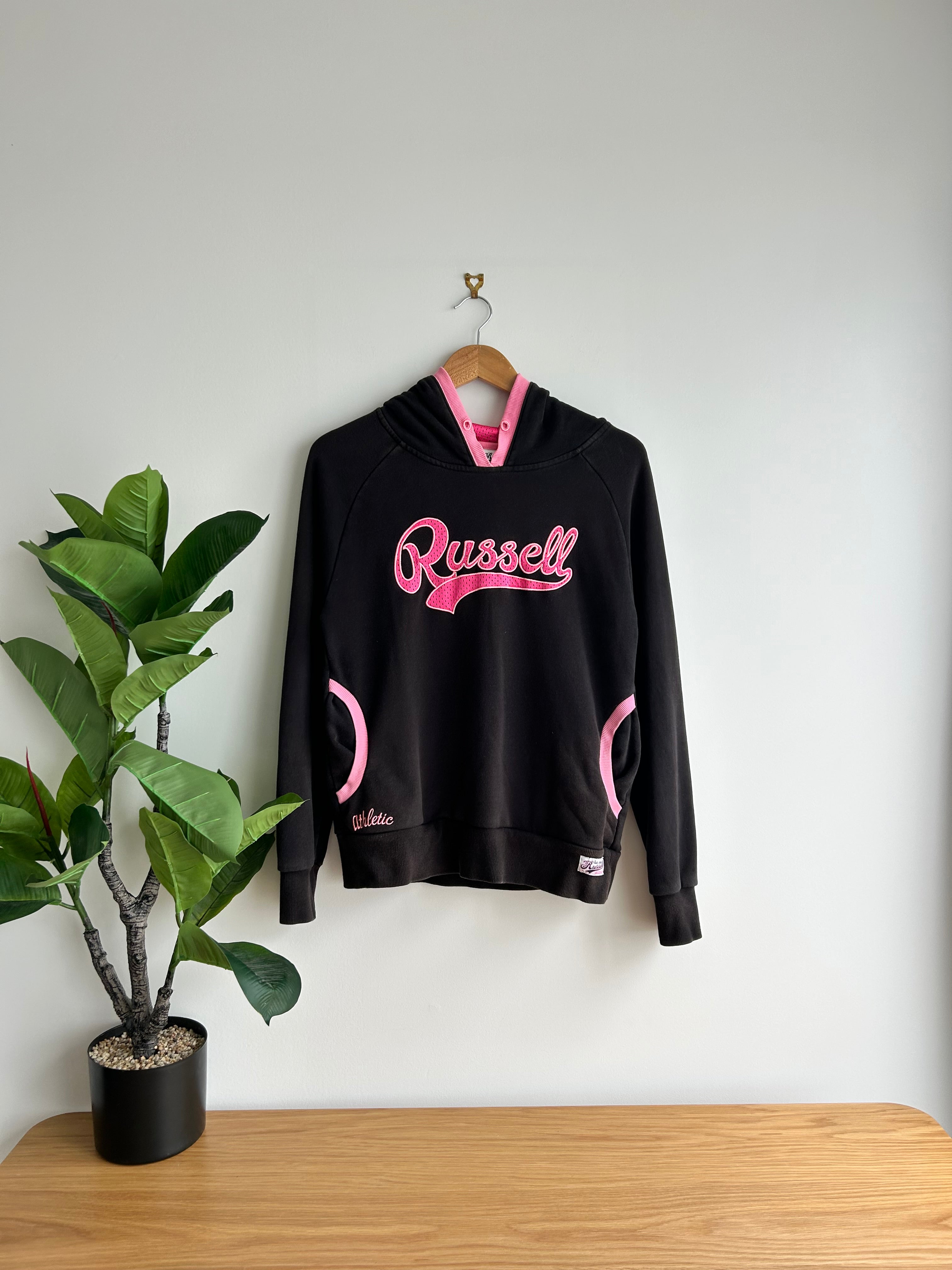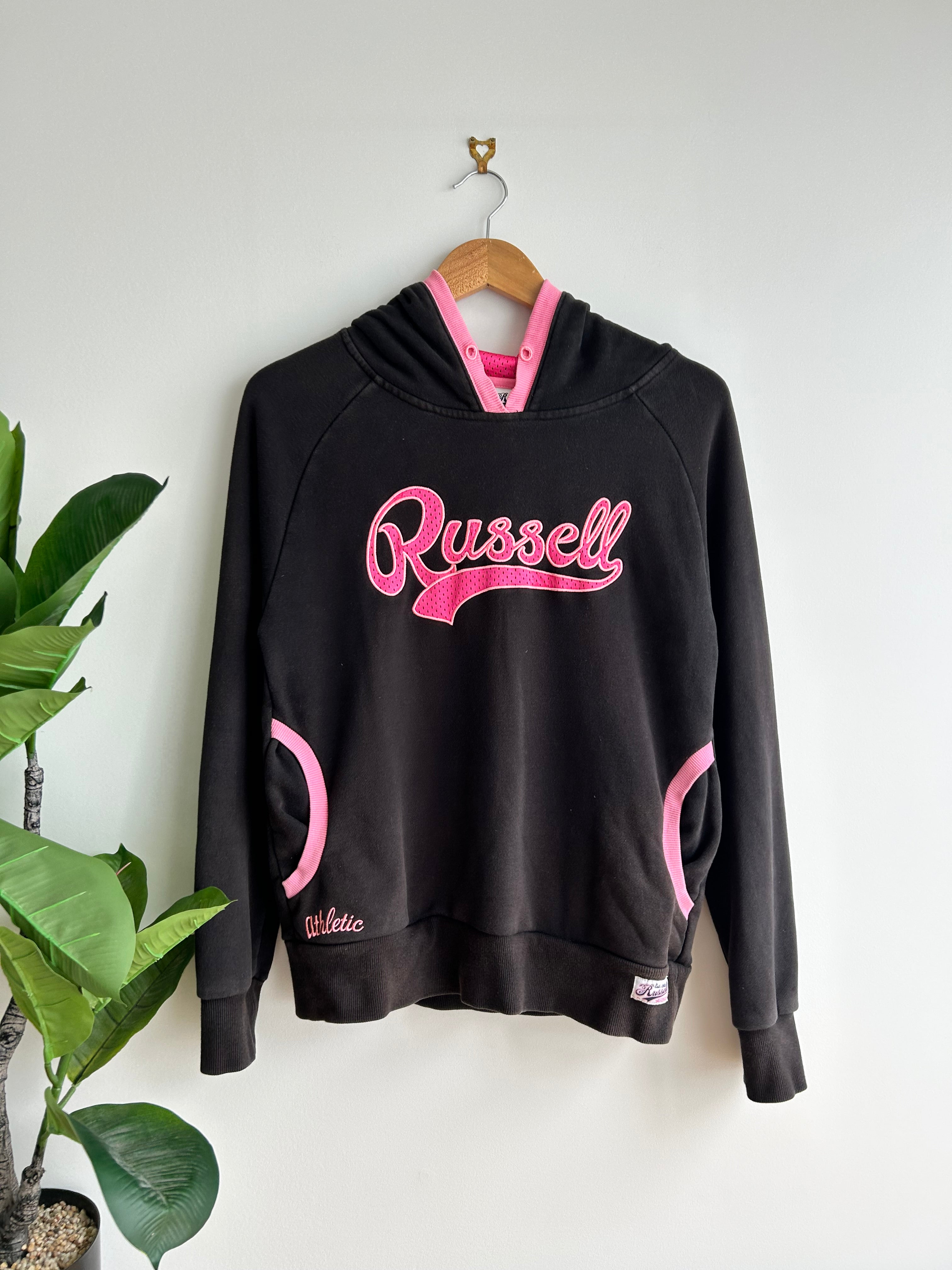 Y2K Old School Russell Athletic Pink/Black Hoodie Sweatshirt